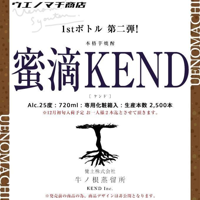 【 予約商品 12月初旬入荷予定 】 蜜滴KEND ケンド 25度 720ml 専用化粧箱付 牛ノ根蒸留所 1stボトル 芋焼酎 ケンファーム 【 お一人様2本迄 】